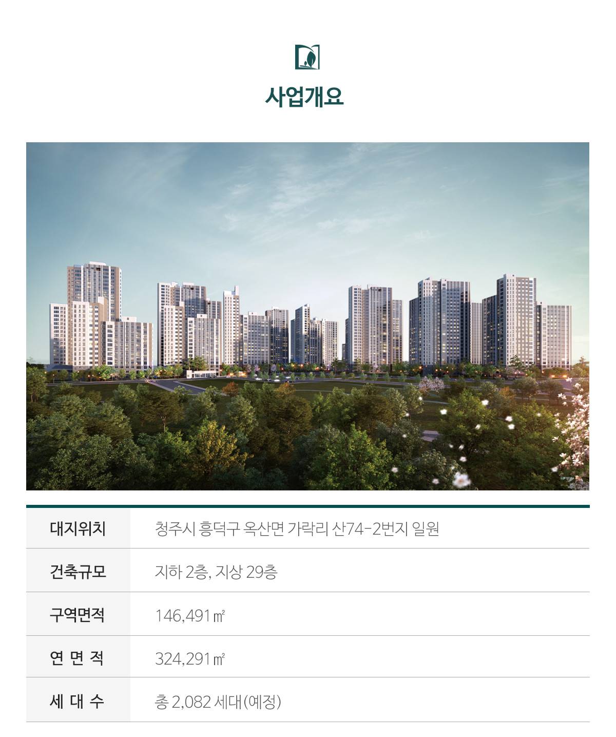 사직3구역 재개발을 통해 탄생하는 대규모 단지로서 청주 원도심의 주거 문화를 선도하는 핵심 가치를 품습니다.